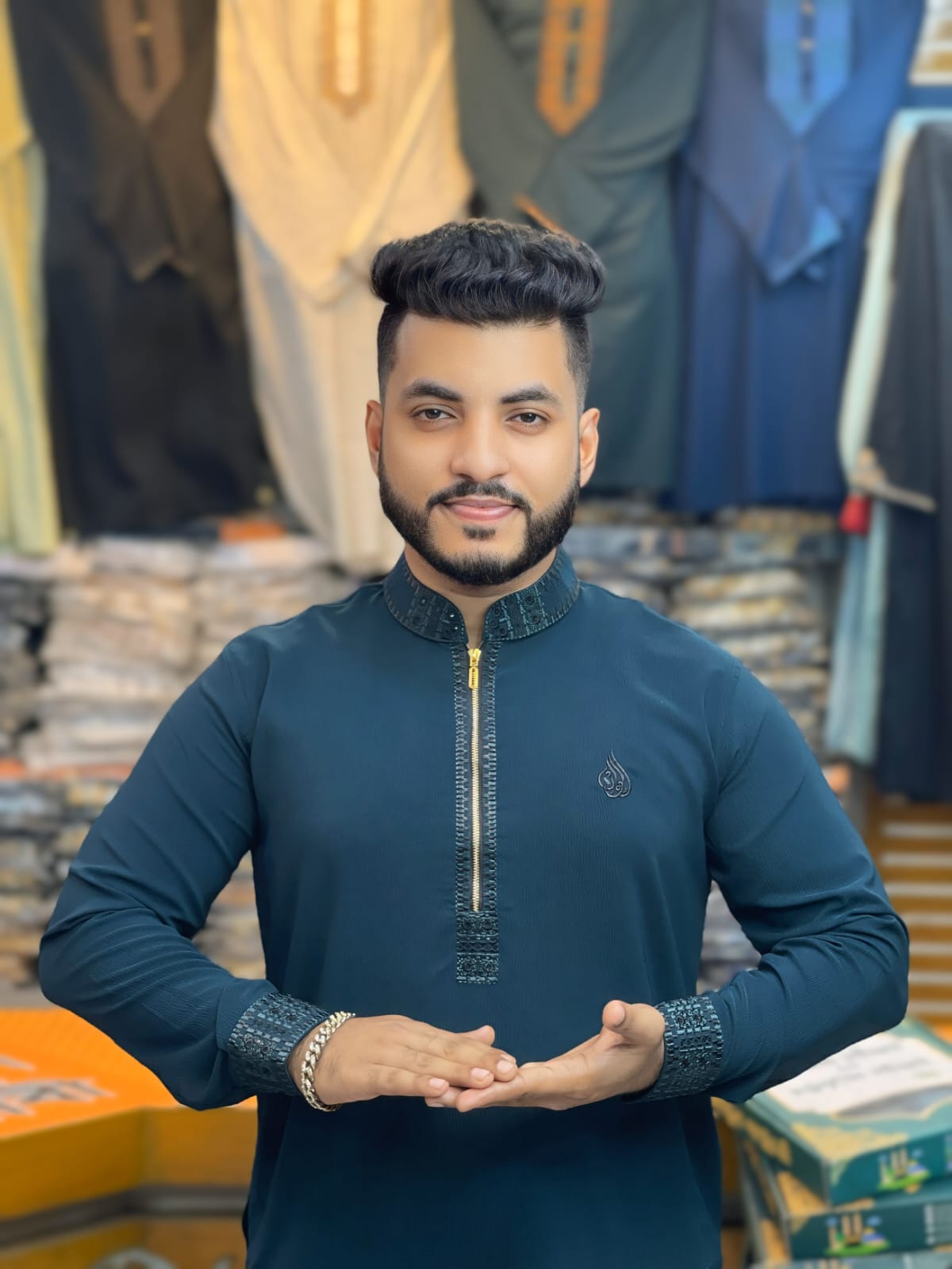 Luxury Zipper Punjabi – Petrol Blue Colour